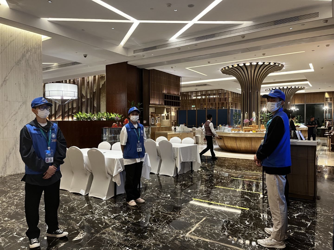 荔园山庄小组作为展会接待组的第一梯队,经过短暂上岗培训后,便正式开展工作。主要负责住建系统各领导、嘉宾的迎宾、接待、核酸检测、住宿和饮食安排等工作。虽然只能承担幕后服务工作,但是每位志愿者都一丝不苟的完成每一项工作,乐在其中,大家为能给本次建博会献上一丝绵薄之力而自豪。