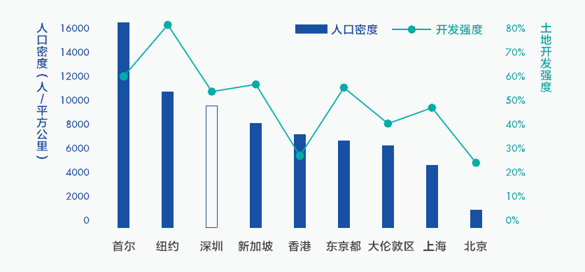 如今,深圳土地开发强度达到50%,基于生态有限承载力的城市空间拓展已到“天花板”。要知道,深圳是全国人口密度最高的城市,人口密度高于新加坡、香港、东京都,城市治理、基础设施、公共服务配套也面临巨大压力。