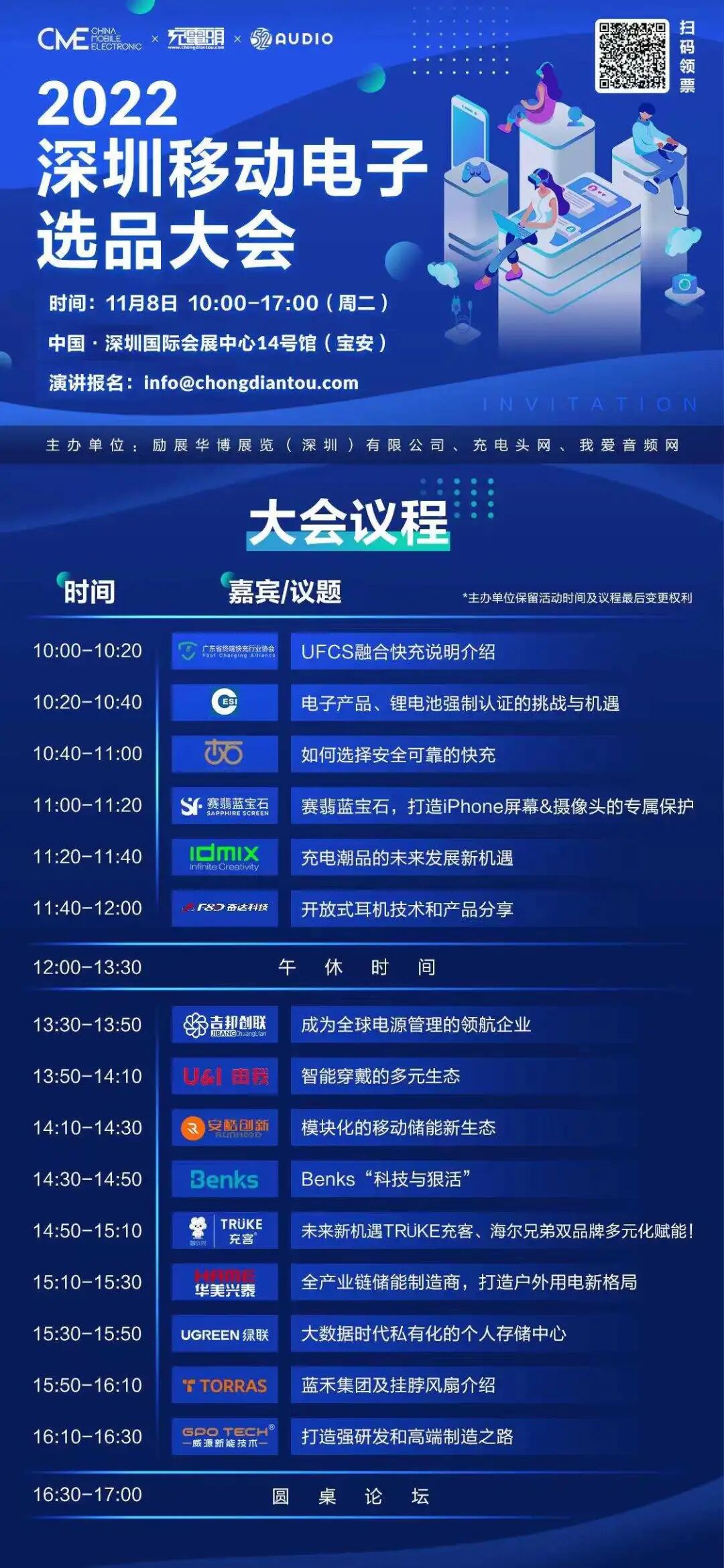 2022深圳国际移动电子展选品大会将于2022年11月8日在广东省深圳市宝安区深圳国际会展中心14号馆举办。大会现场有峰会演讲环节,广东省终端快充行业协会受邀参与,感兴趣的朋友可在展会期间前往论坛区进行沟通交流。
