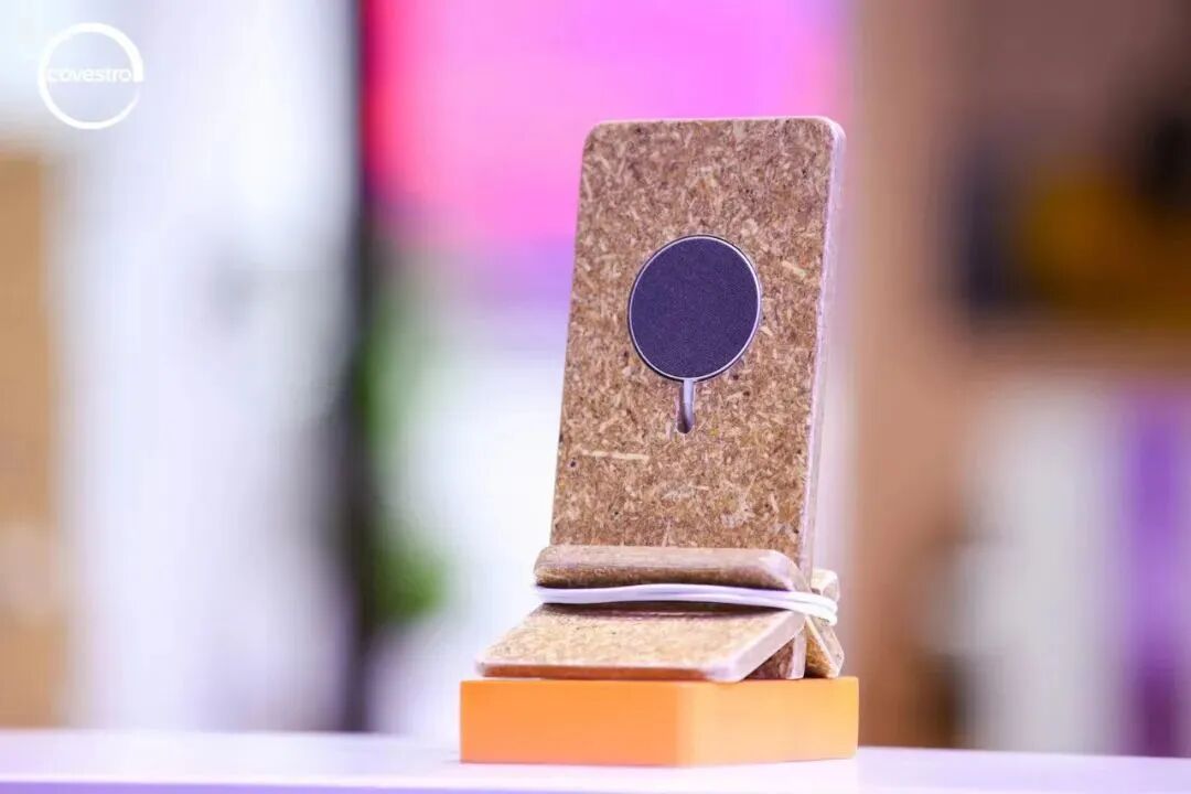 作为国际知名的材料供应商,亦是嘉宝莉的战略型原材料合作伙伴,科思创展示了一组可持续发展理念产品——低碳循环再生手机充电架,该产品在原材料、设计、涂装上都从可持续发展理念出发,其中涂料就应用了嘉宝莉生物基涂料。
