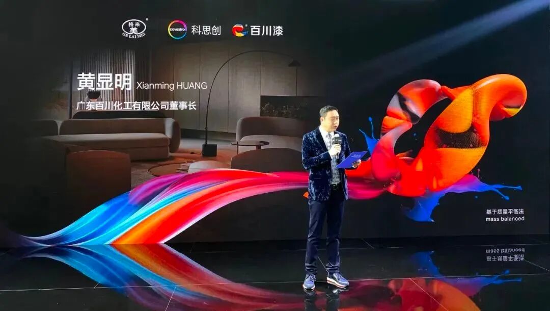 据百川化工董事长黄显明介绍,采用了百川生物质原银抗菌漆,其中所使用的生物质原材料中生物质原料份额超过30%,生产过程通过国际可持续发展与碳认证(ISCC)权威机构质量平衡体系认证,较同类化石基产品可减少20%以上的碳排放。