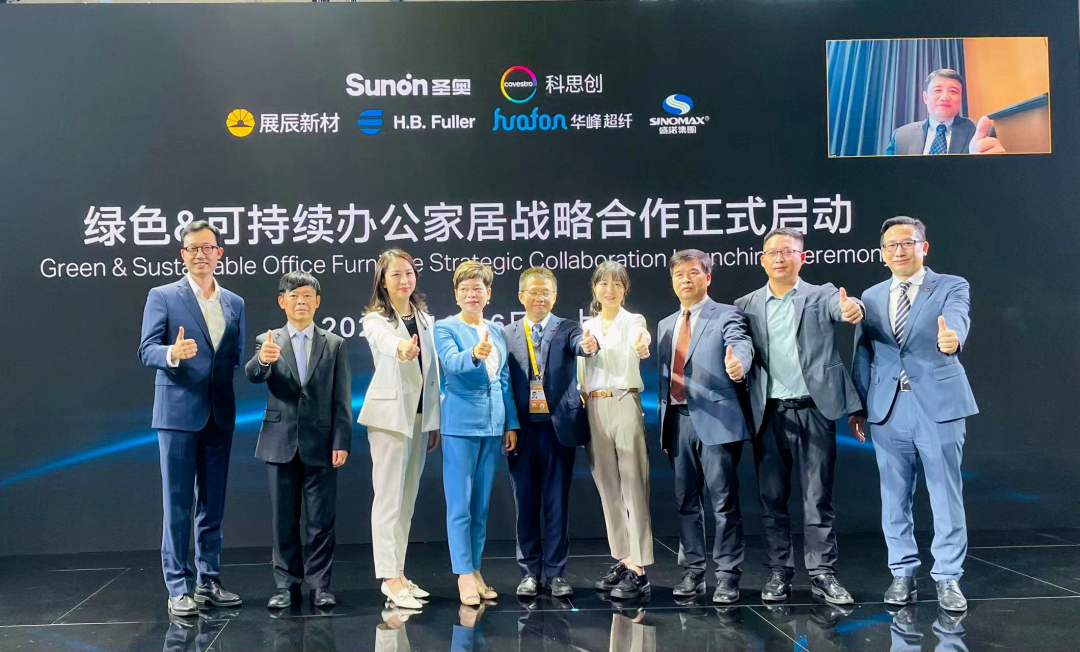 11月6日,在2022进博会现场,圣奥科技办公、展辰新材、科思创等产业链合作伙伴共同签署《绿色和可持续办公家具战略合作》,以期推动创新型循环材料的商业化应用进程,降低圣奥产品的碳足迹,促进办公家具行业低碳发展。