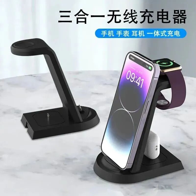 3、三合一快速无线充电器,可同时为iphone、QI标准手表、TWS充电。