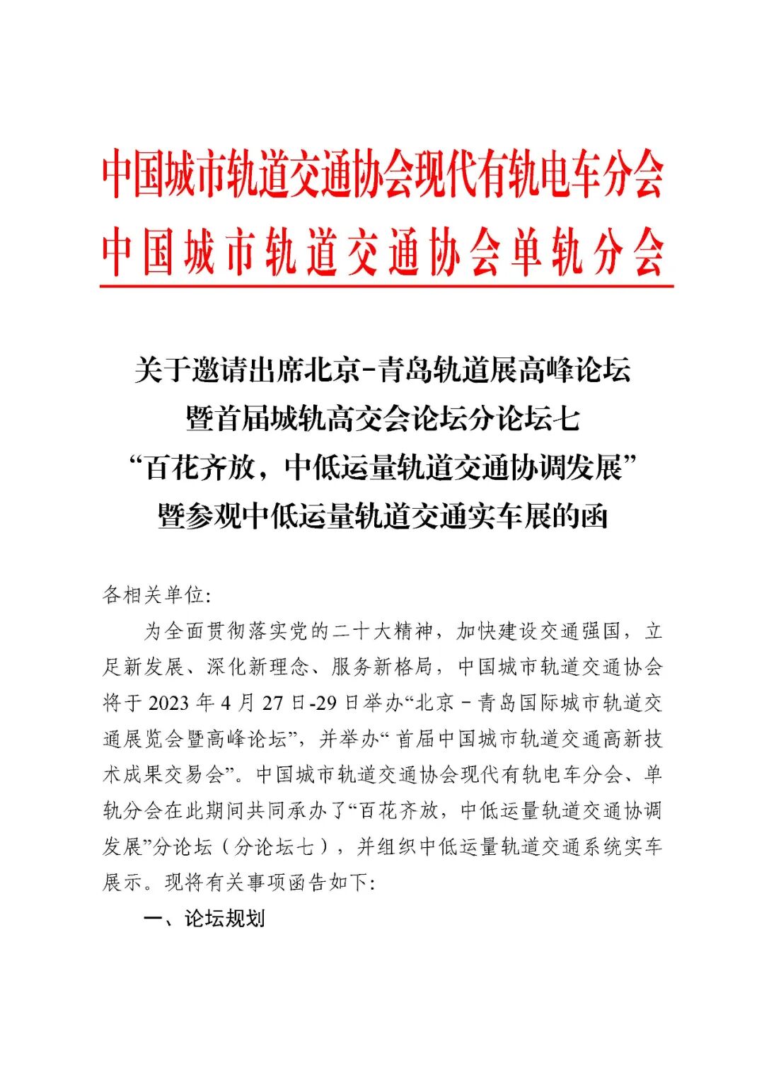 诚挚邀请贵单位领导、专家出席本次“百花齐放,中低运量轨道交通协调发展”分论坛,并参观中低运量轨道交通实车系统展示,期待与您共商我国中低运量轨道交通发展,如愿之时,不胜感激!