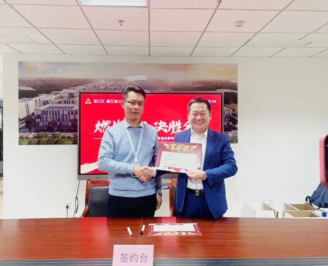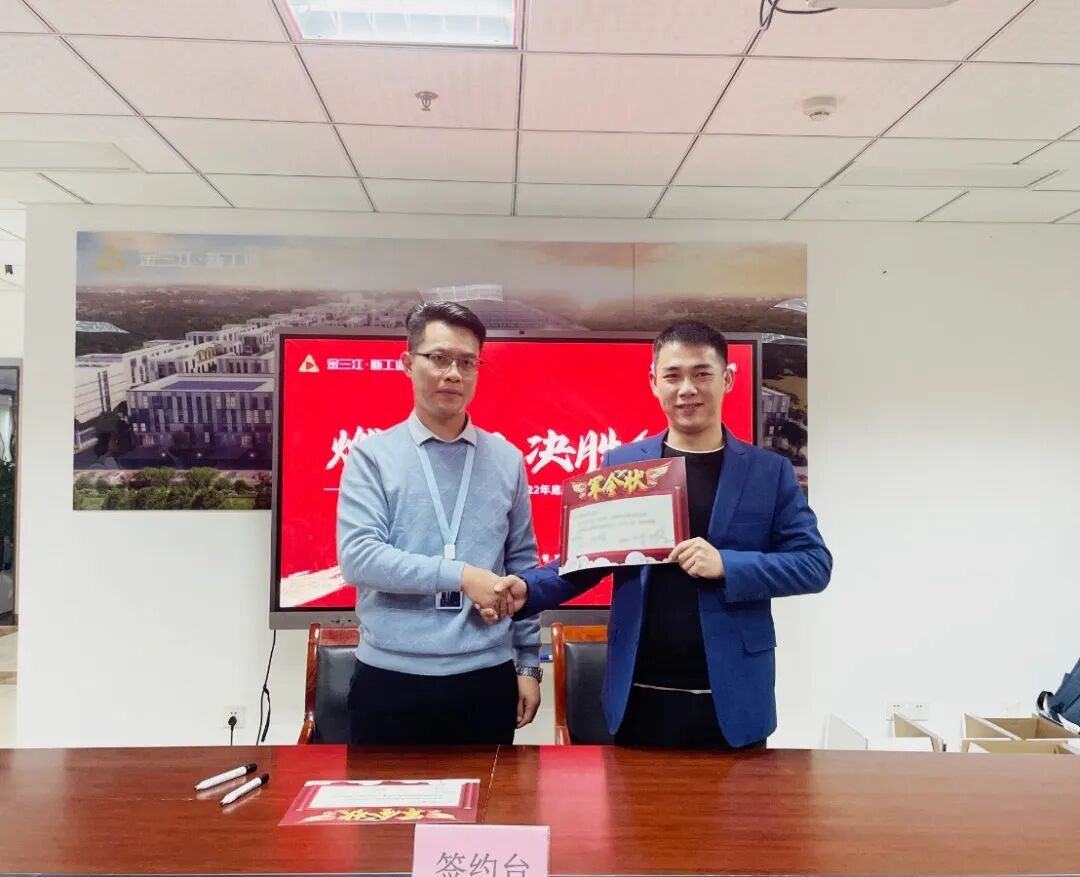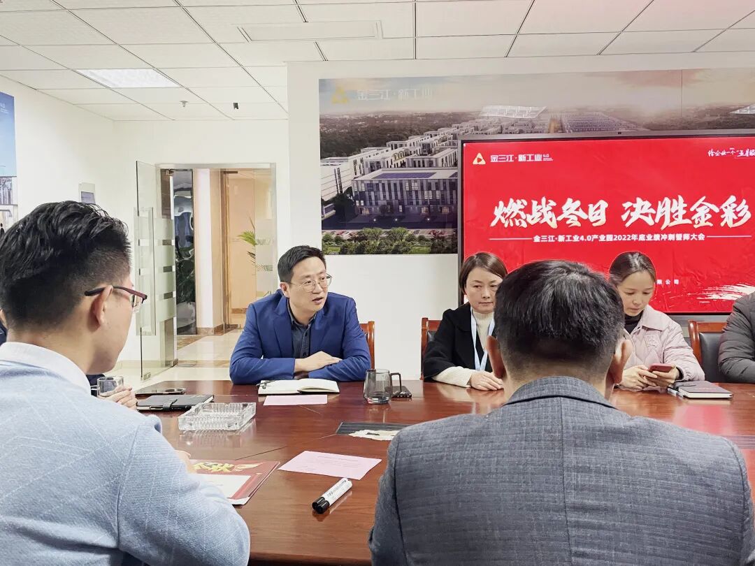 为鼓舞团队士气、增强团队凝聚力,11月30日下午,“燃战冬日 决胜金彩”金三江·新工业4.0产业园2022年底业绩冲刺誓师大会在公司会议室圆满举行。安徽金三江工业园区管理有限公司董事长江涛、总经理张峰、招商总监叶顺以及公司员工参加了本次会议。