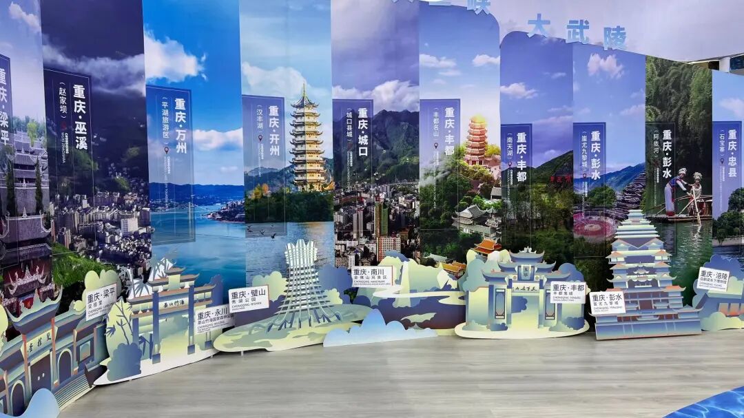 本届旅游展上,重庆精心搭建120㎡特装形象展位,通过群山绵延式弧形外立面、两江交汇地面流水型设计,生动展现了重庆这座“山水之城 · 美丽之地”的独特魅力。展区现场,土家族摆手舞欢快起舞,梁平木板年画、永川中药纂香非遗传承人精彩互动,各参展单位携地方特产美食、精美文创、非遗好礼、宣传资料等积极开展现场展销和对接洽谈,多维度展示了重庆的自然风光之美和多彩人文之韵。