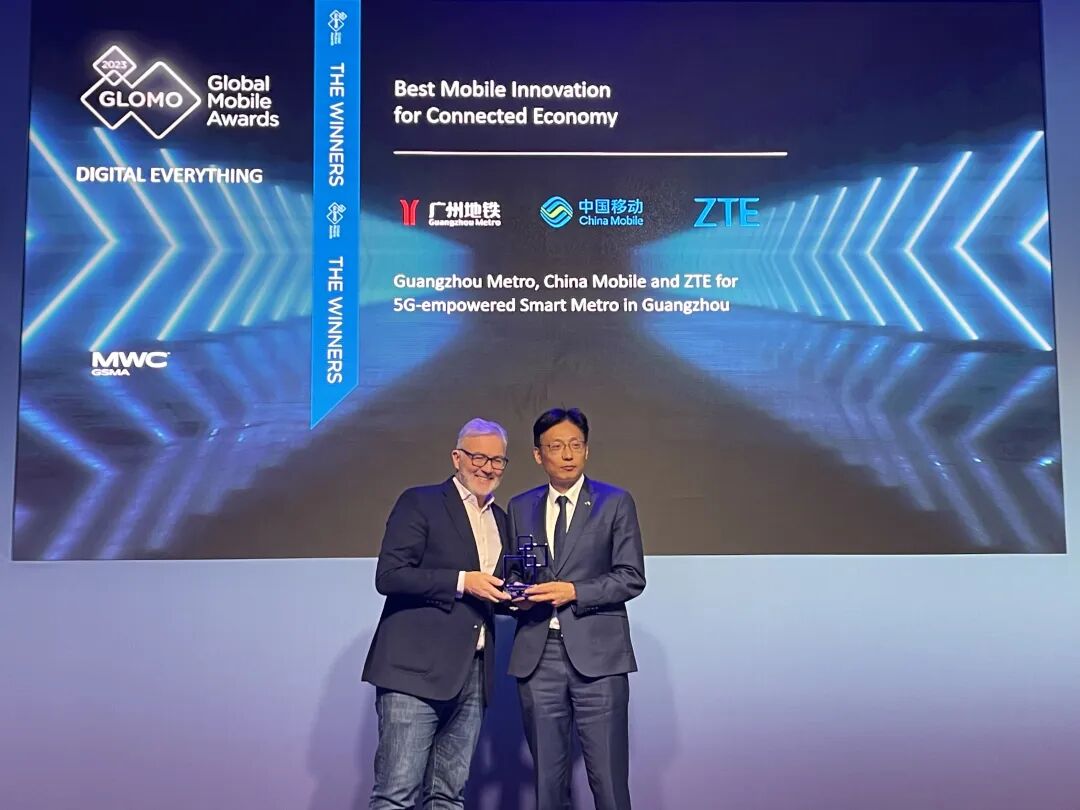 在2023世界移动通信大会(MWC 2023)上,中兴通讯与广州地铁、广州移动联合打造的“广州5G智慧地铁”项目荣获了GSMA GLOMO“最佳移动互联经济创新奖”,被誉为移动产业的奥斯卡。