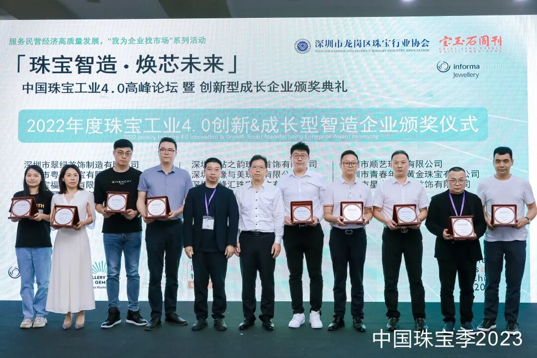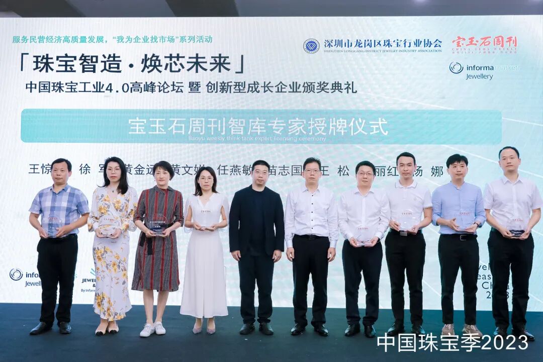 6月3日下午,由深圳市龙岗区工商联(总商会)指导,深圳市龙岗区珠宝行业协会、英富曼会展集团、宝玉石周刊联合主办的2023“中国珠宝季”——「珠宝智造 • 焕芯未来」中国珠宝工业4.0高峰论坛暨创新型成长企业颁奖典礼在深圳会展中心(福田)圆满举行。
