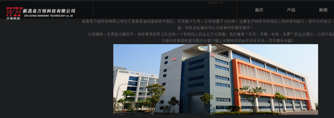 新昌县万恒科技有限公司主要生产WH系列各档空心包纱系列锭子、短纤化纤锭子、气流纺转杯、分梳辊,自络筒顶盘,纺机齿轮箱系列以及各种纺机精密部件。其拥有一支具备过硬技术、良好素质的员工队伍和一个积极向上的企业文化氛围,秉承“务实、求精、科技、发展”的企业理念。