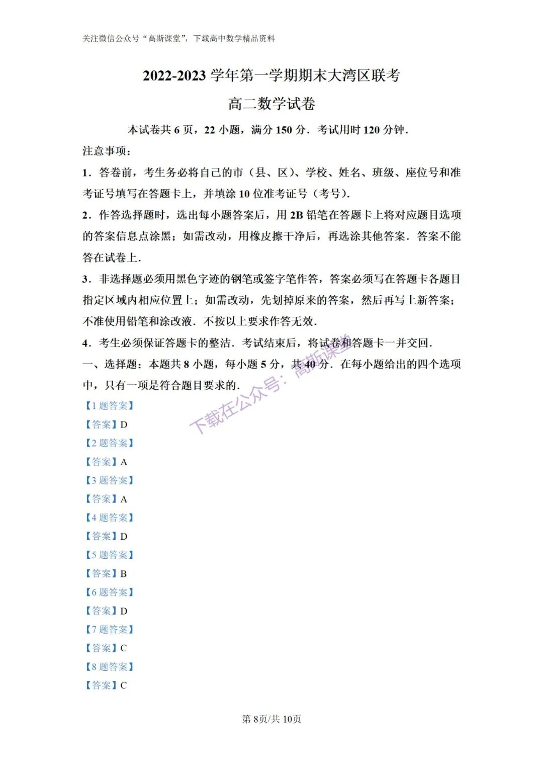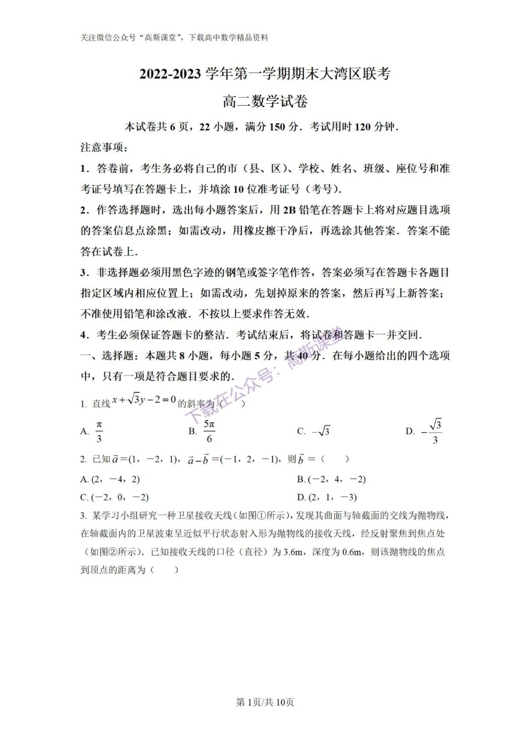 | 广东省大湾区2022-2023学年高二上学期期末联考数学试题
