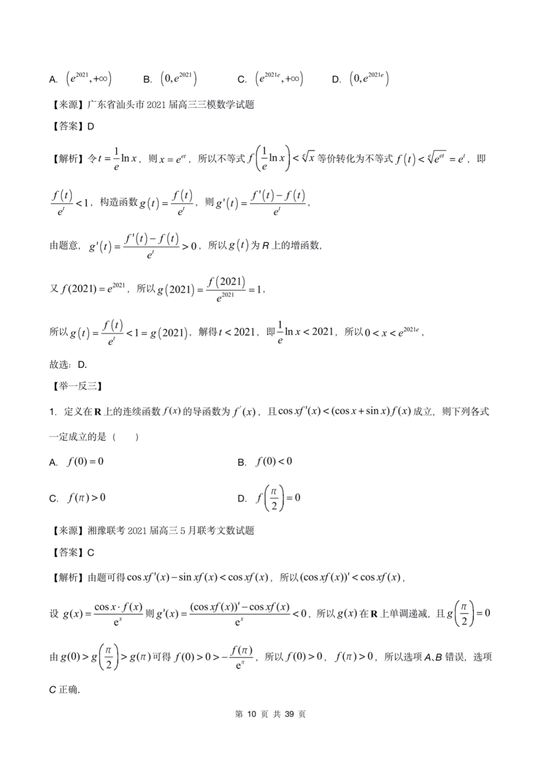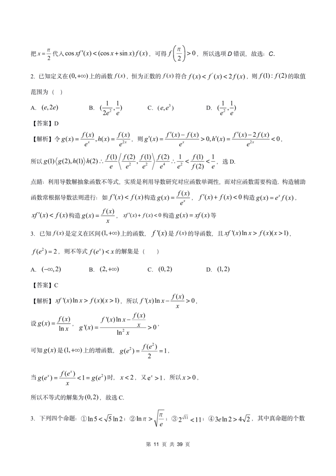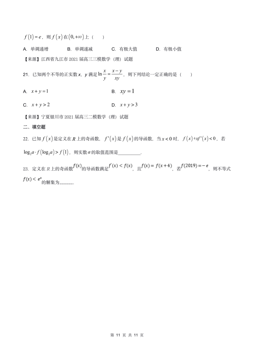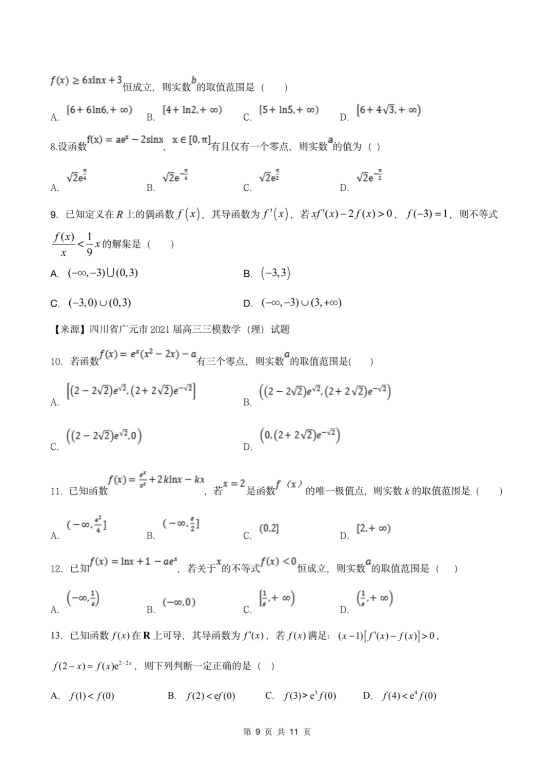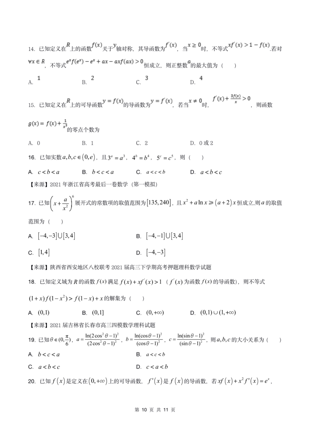 2. 压轴汇编|2021届高三名校名卷数学模拟压轴精选分题型汇编720题(选填+概率统计、圆锥曲线、导数大题)