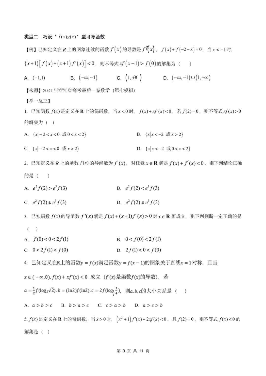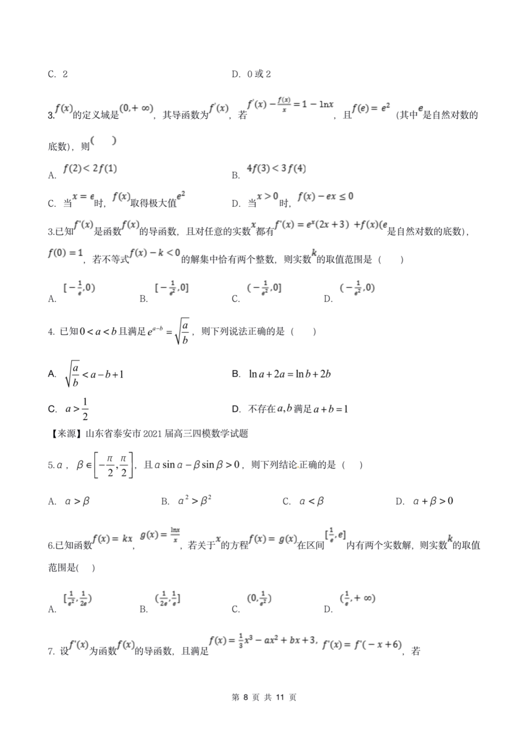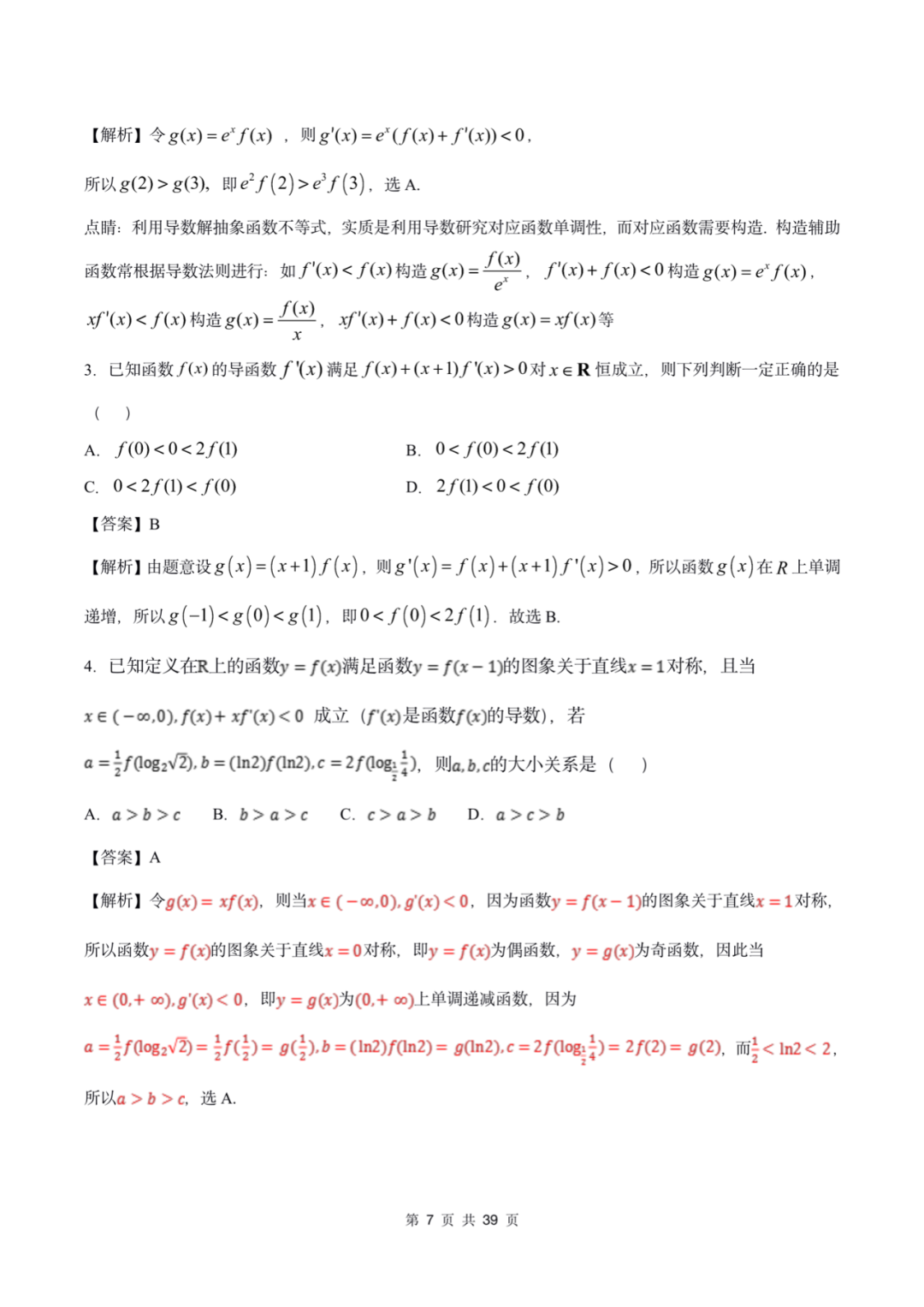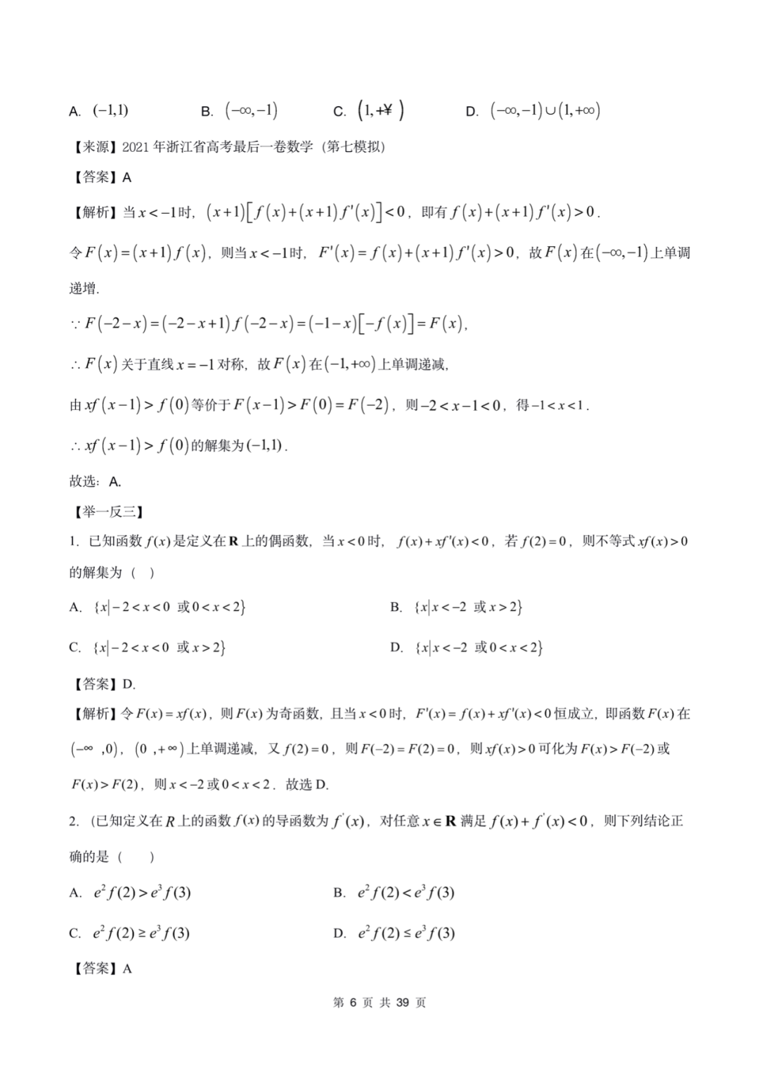2. 压轴汇编|2021届高三名校名卷数学模拟压轴精选分题型汇编720题(选填+概率统计、圆锥曲线、导数大题)