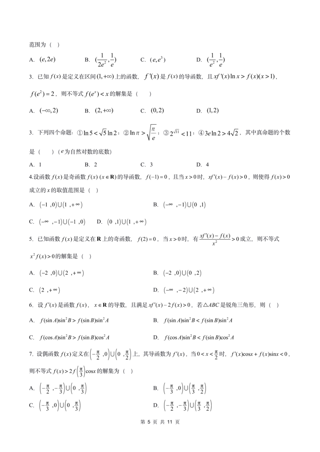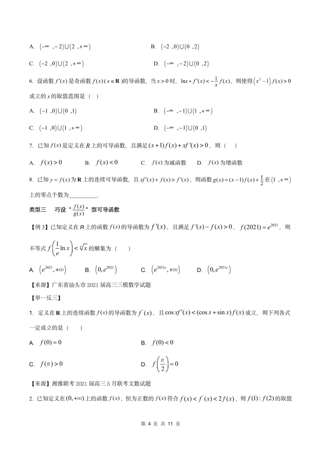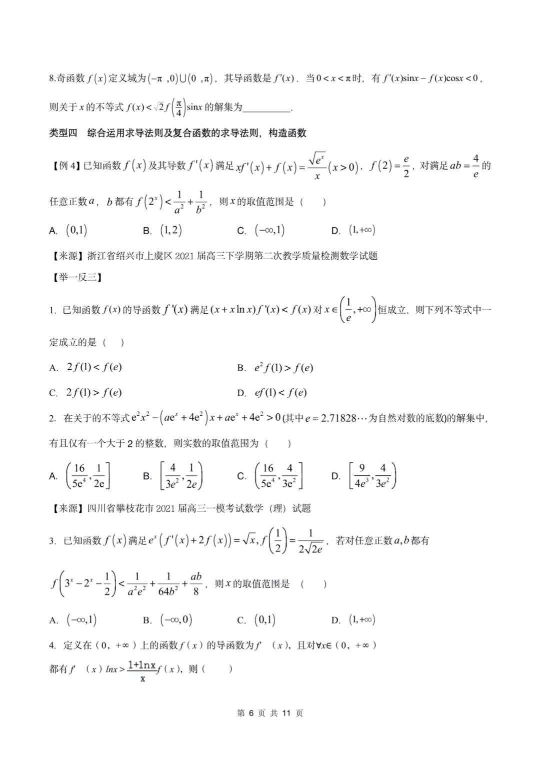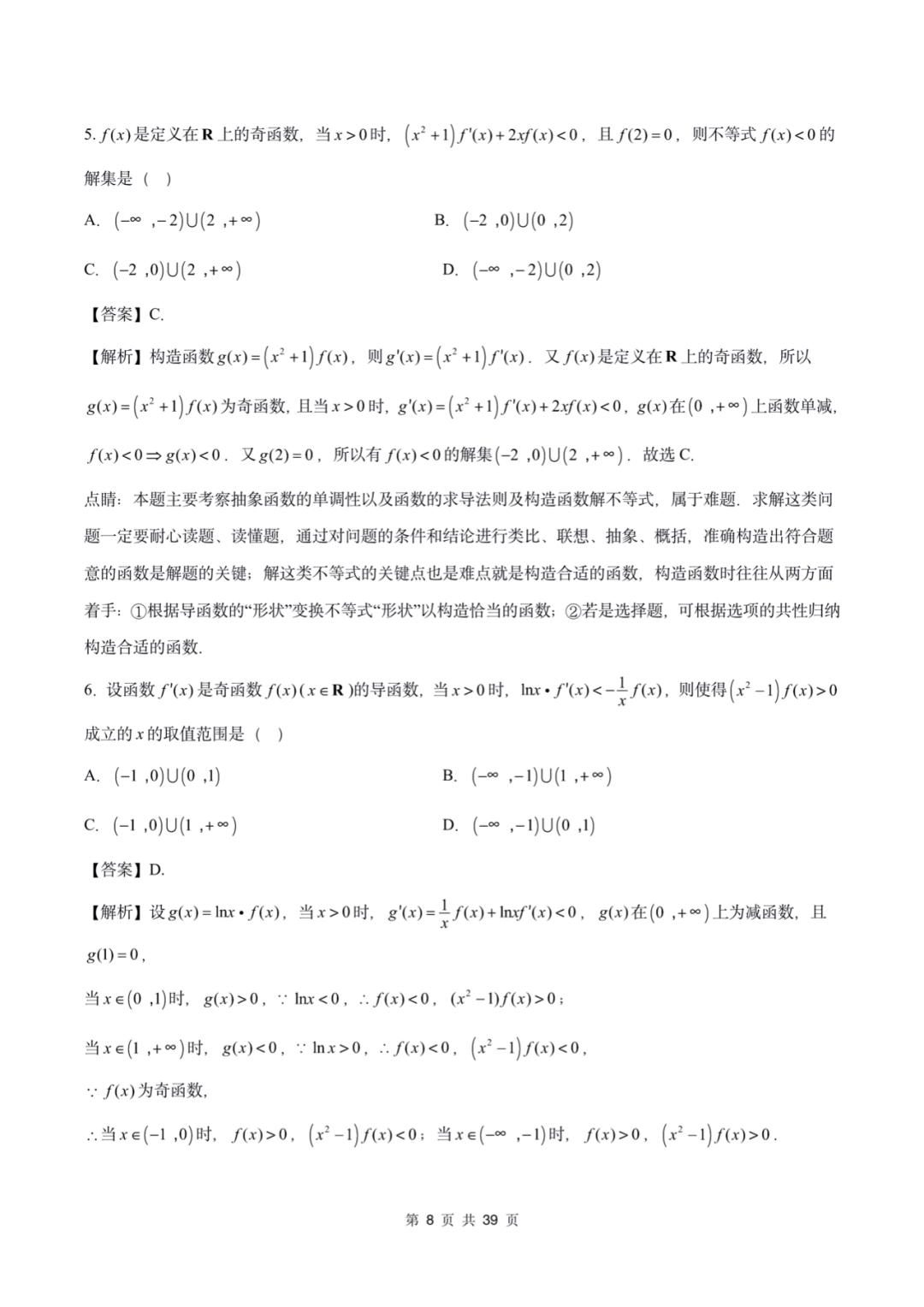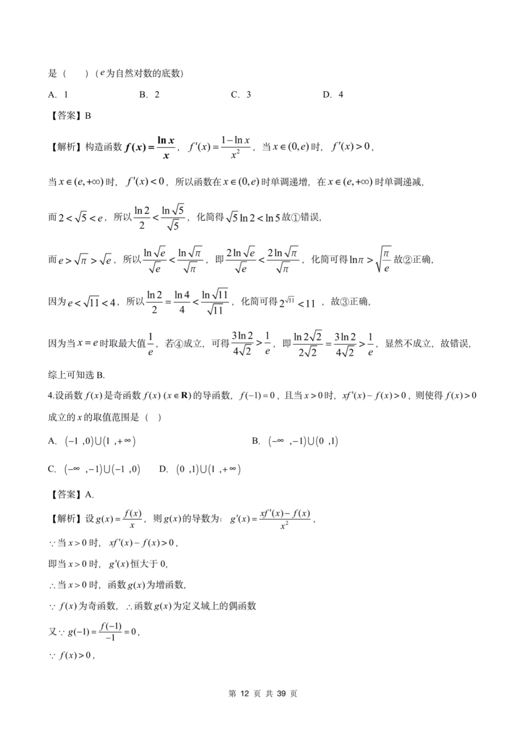 2. 压轴汇编|2021届高三名校名卷数学模拟压轴精选分题型汇编720题(选填+概率统计、圆锥曲线、导数大题)