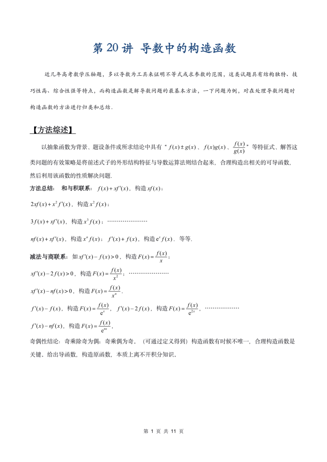 16. 微专题合集| 高考数学100个热点问题微专题讲义(word版含答案/解析)