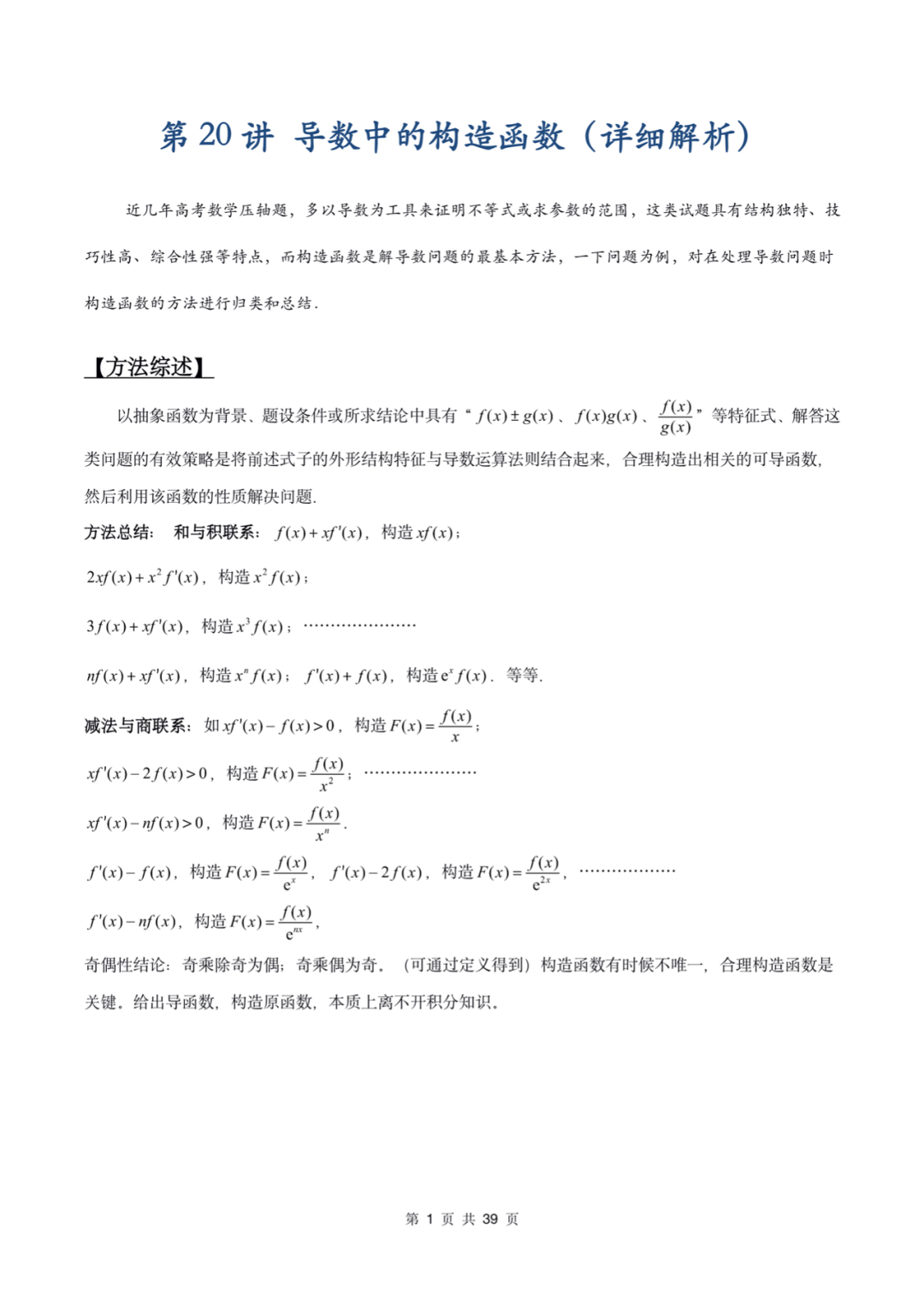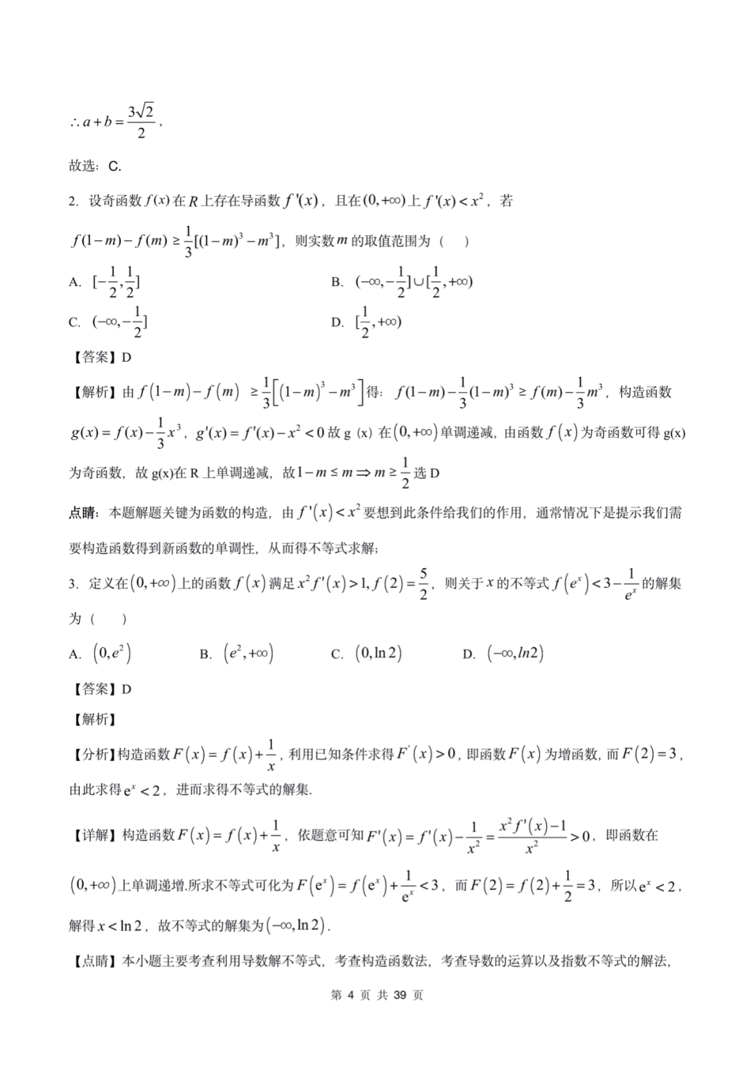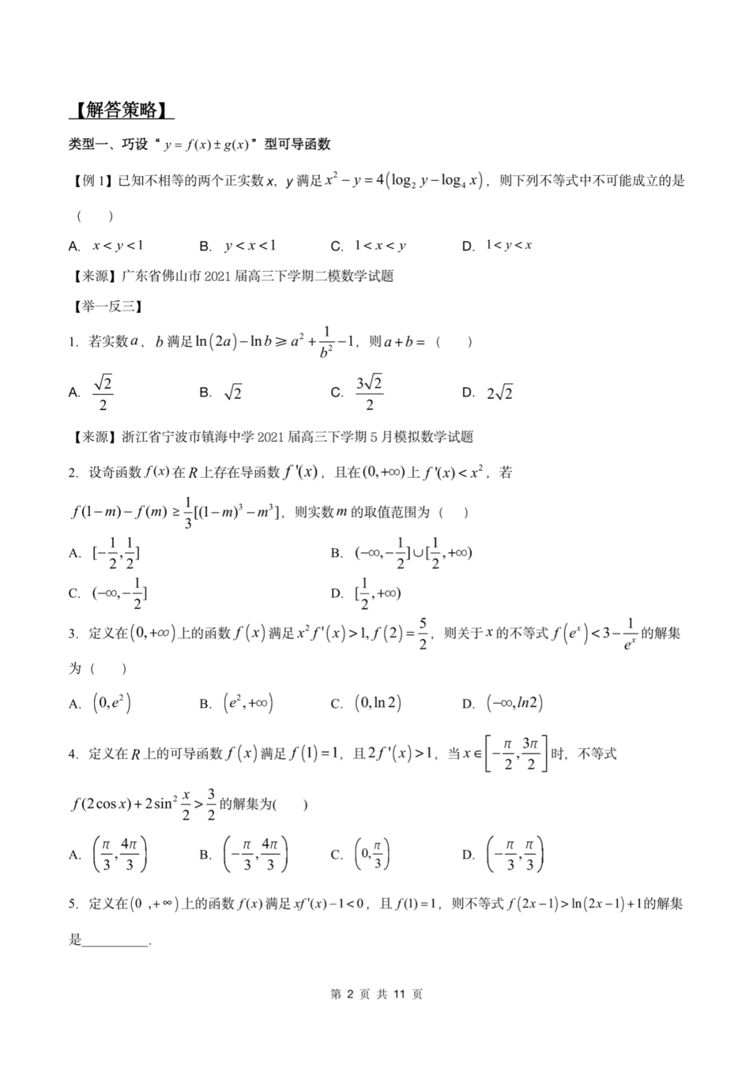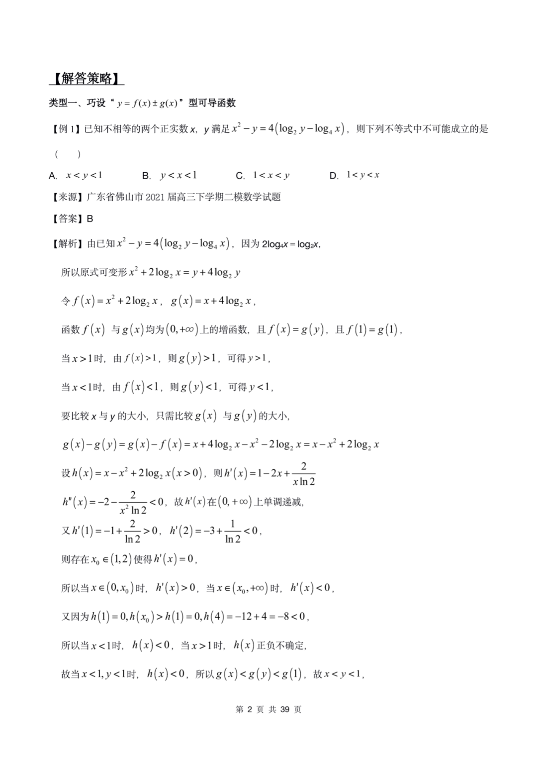 90. 2022年高考导数压轴题一题多解方法讲义(原件+解析word版)