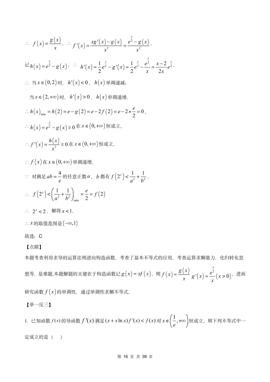 163. 形如f(x)ex+g(x), f(x)lnx+g(x)型的函数问题