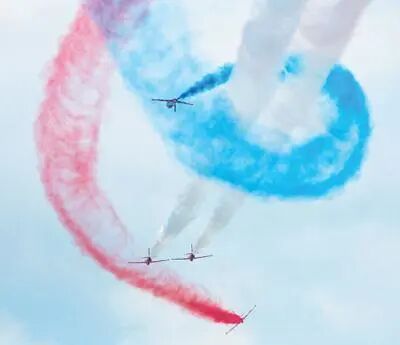 空军航空大学“红鹰”飞行表演队进行飞行表演。