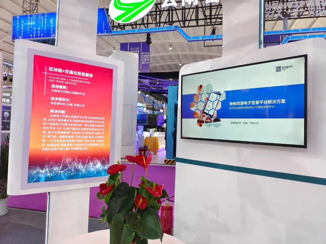 11月19日-22日,第6届中国-南亚博览会暨第26届中国昆明进出口商品交易会(简称“南博会”)在昆明滇池国际会展中心举行,世界目光再次聚焦昆明。易签链公司基于区块链物电同源电子印章的签章平台,作为云南省区块链中心的关注项目在南博会精彩亮相。