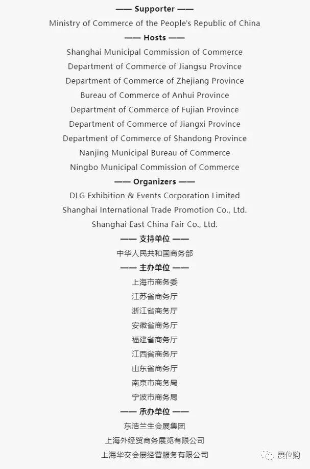中国华东进出口商品交易会(简称“上海华交会”)由中华人民共和国商务部支持,上海市、江苏省、浙江省、安徽省、福建省、江西省、山东省、南京市、宁波市等 9 省市商务部门联合主办,创办于 1991 年,是专注轻工和纺织的 B2B 经贸展会。