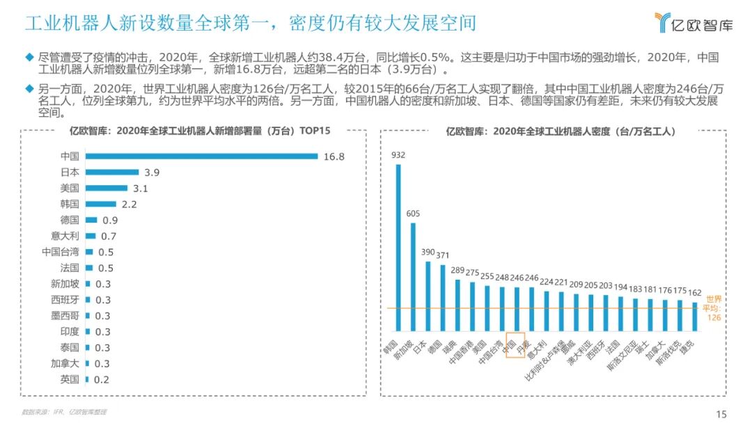 机器人被誉为“制造业皇冠顶端的明珠”,其研发、制造、应用是衡量一个国家科技创新和高端制造业水平的重要标志。自“十三五”以来,我国 机器人产业蓬勃发展,尤其是工业机器人。2021年,中国工业机器人销量为25.6万台,同比增长48.8%,已经连续8年成为全球最大的工业机器 人消费国。