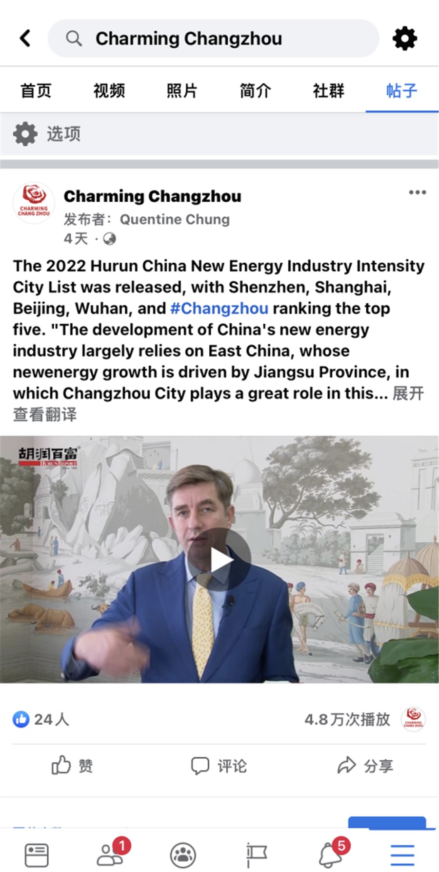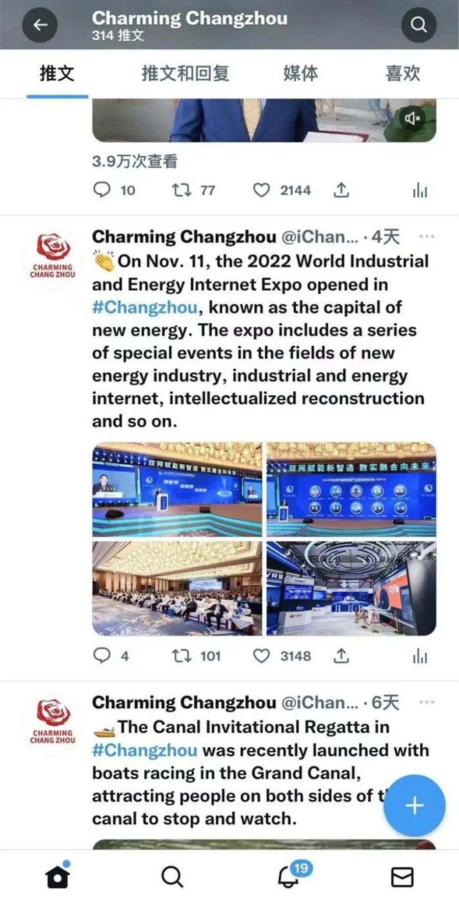 Charming Changzhou账号Facebook和Twitter截图