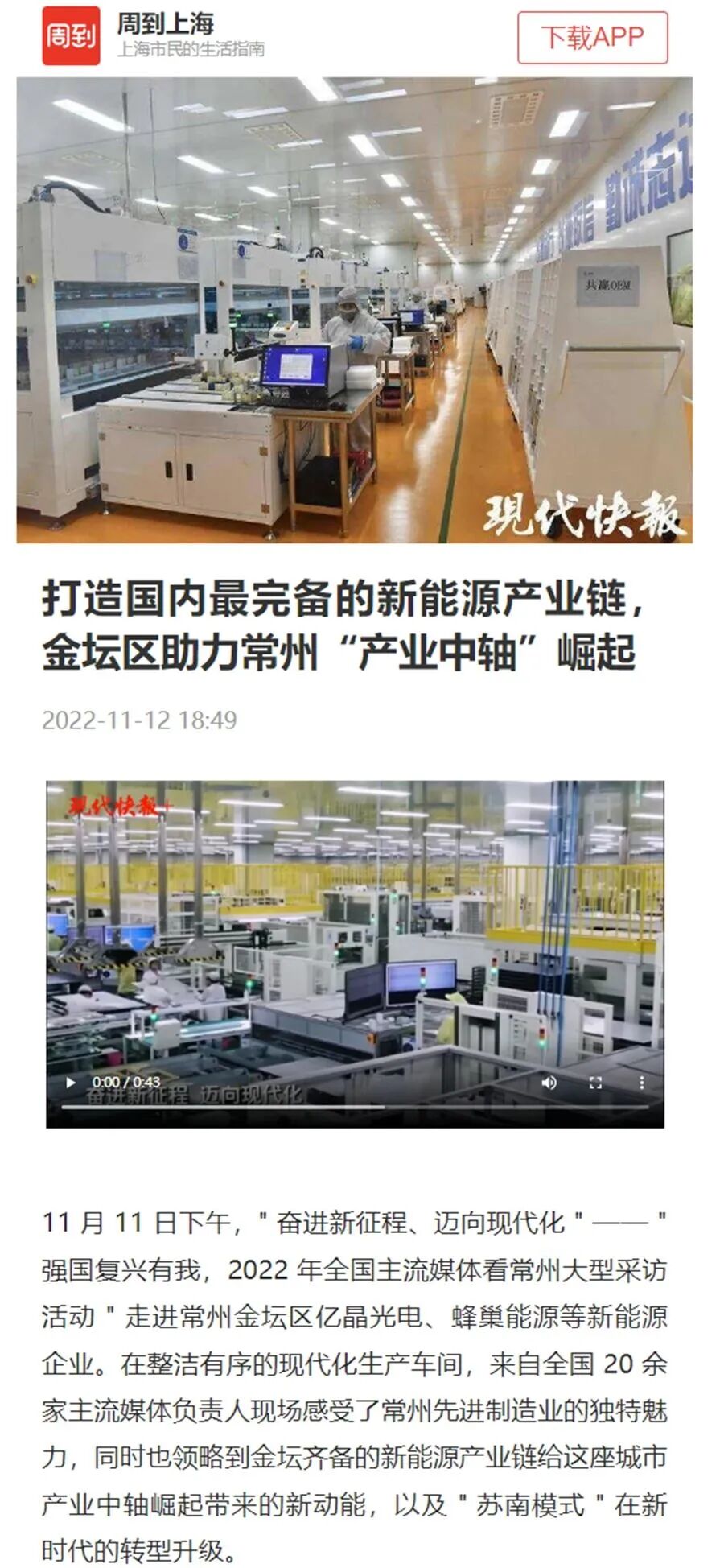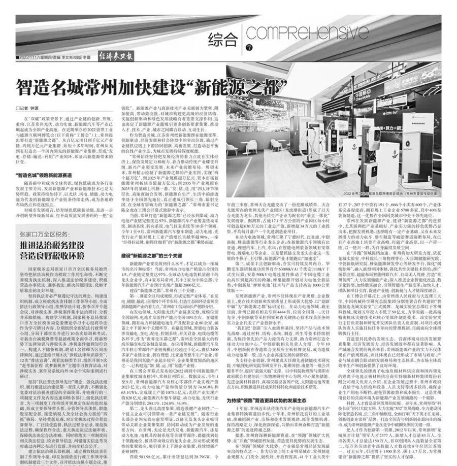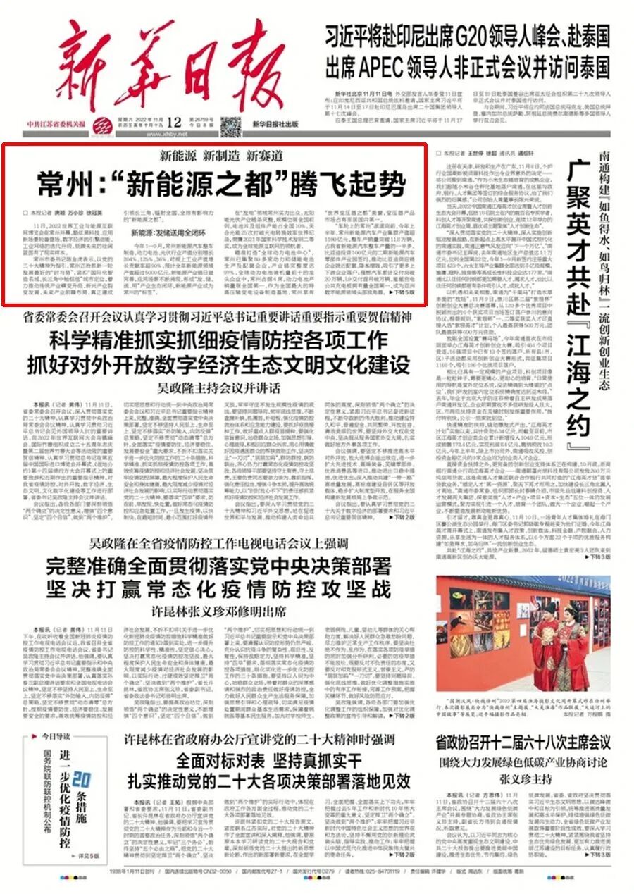 做足深度报道。11月1日,市委宣传部邀请新华社内参、中经社智库、中国证券报、上海证券报、澎湃、新华日报、现代快报部门负责人和资深记者来常州,通过组织座谈会、走访产业园区、重点企业,深度采访常州新能源之都的探索实践和成效,《经济参考报》推出整版报道《智造名城常州加快建设“新能源之都”》、新华财经推出《常州“新能源之都”启示录》《智造名城常州领跑“新能源”赛道的三个密码》等5篇报道;澎湃推出《发力“新能源之都”,常州提出三年后新能源车渗透率达55%》《常州冲击“新能源之都”,预计到2025年产业规模上万亿》;新华日报刊发专版报道、北京西路瞭望微信公号、交汇点客户端共发稿近50篇。
