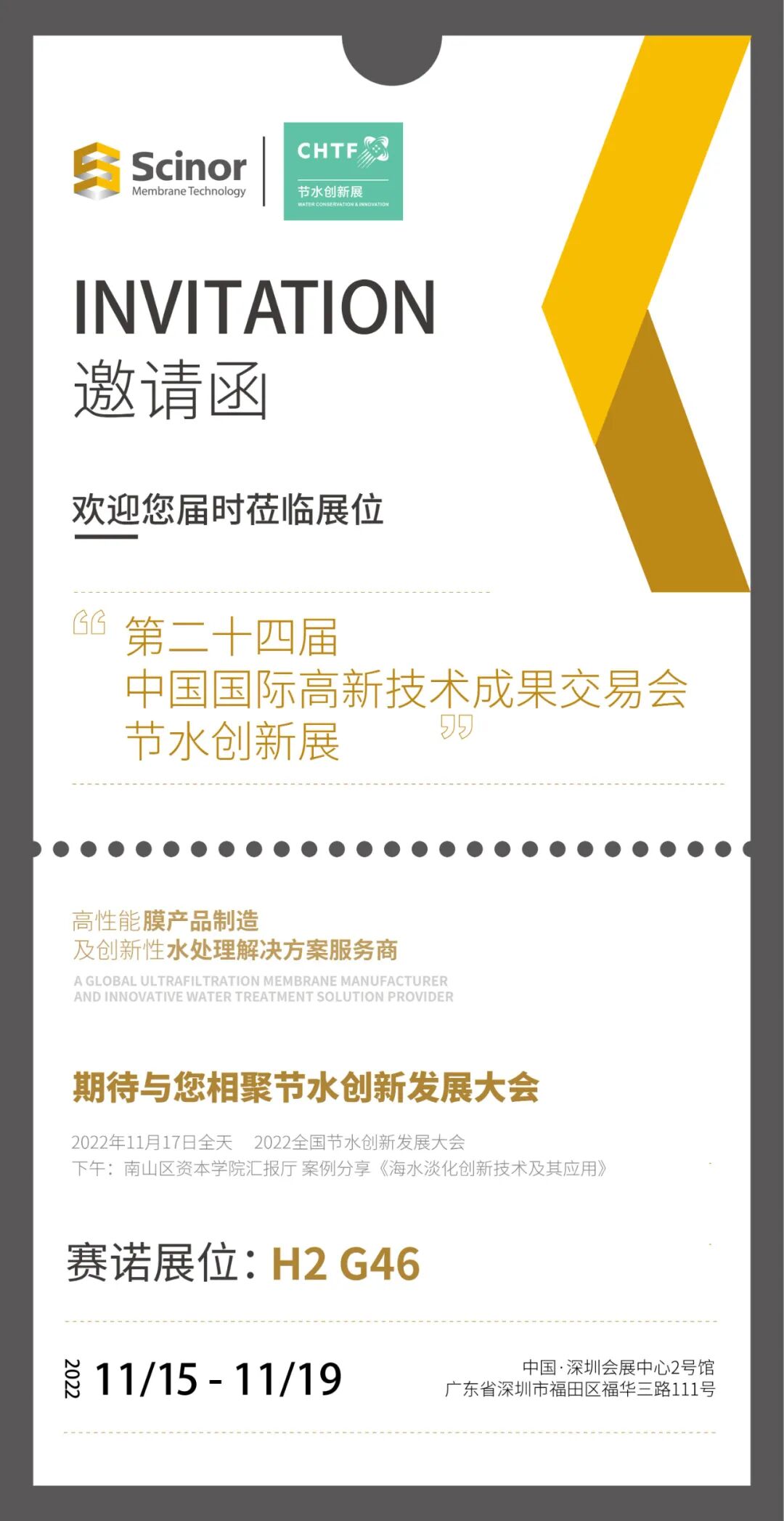 2022第二十四届中国国际高新技术成果交易会·节水创新展 | Scinor邀请函,待您查收!