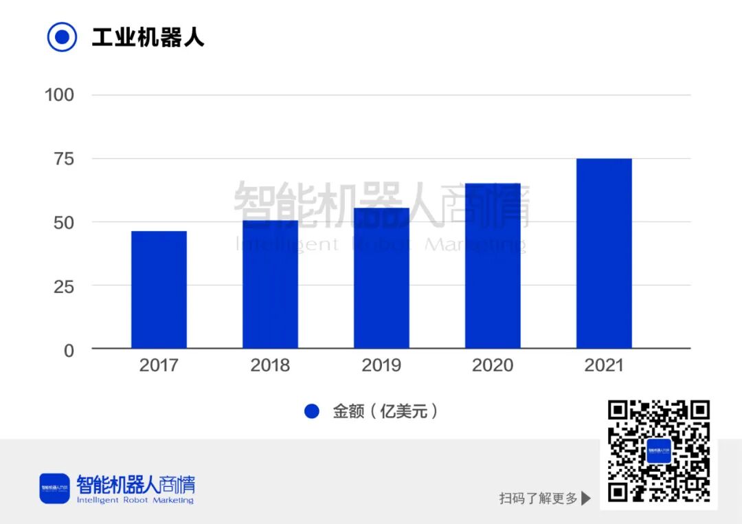 细分市场工业机器人可用于多种应用场景包括工业制造和商业应用等。中国工业机器人2021年的市场规模为75亿美元。发展至今中国已连续九年成为全球最大的工业机器人市场。预计2022年中国工业机器人市场将达到87亿美元,紧随其推广普及在未来十年将实现突破式增长。