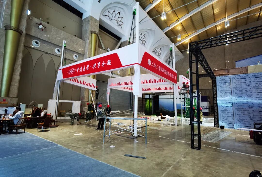 现场搭建工作是整个展会筹备中最重要的环节之一,它有承上启下的作用,当一张张设计图成为现实,灯光、音效、文化场景共同作用下,各展厅为观展者营造出沉浸式场景体验,正是整个展会的灵魂所在。