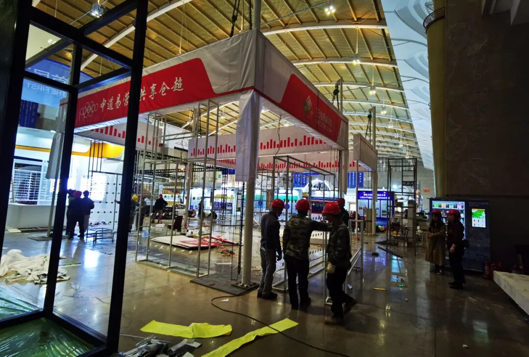中道易营·共享仓超7T12展位,展位结构搭建、灯箱装置、音响装置等工作正在紧张有序如火如荼的进行中。