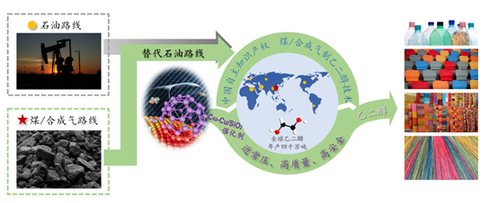 厦门大学谢素原团队与袁友珠团队,联合中国科学院福建物质结构研究所和厦门福纳新材料科技有限公司的研究人员将富勒烯C60作为“电子缓冲剂”用于改性铜—二氧化硅催化剂,研发了以C60电子缓冲来稳定亚铜的富勒烯—铜—二氧化硅催化剂,实现了富勒烯缓冲的铜催化草酸二甲酯在温和压力条件下数千克规模的乙二醇合成,有望降低对石油技术路线的依赖。