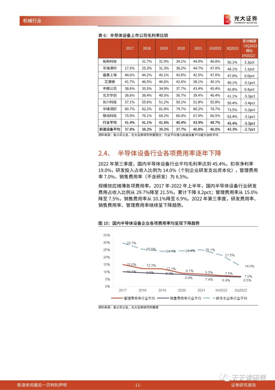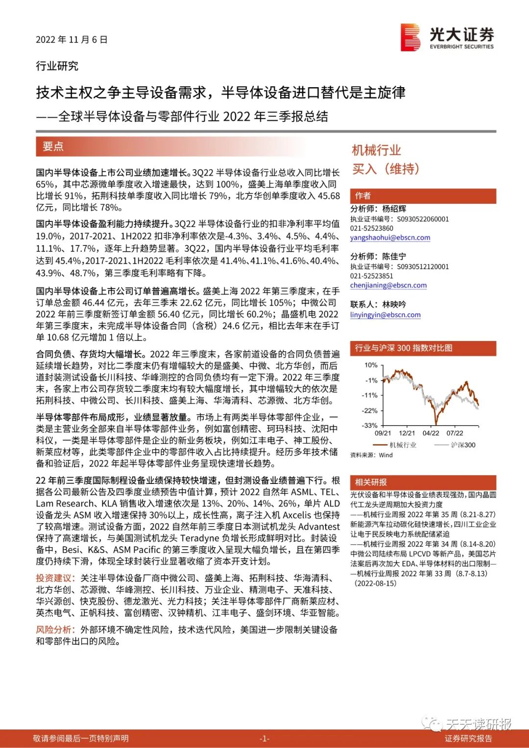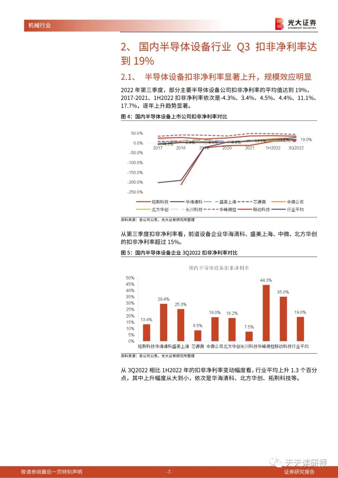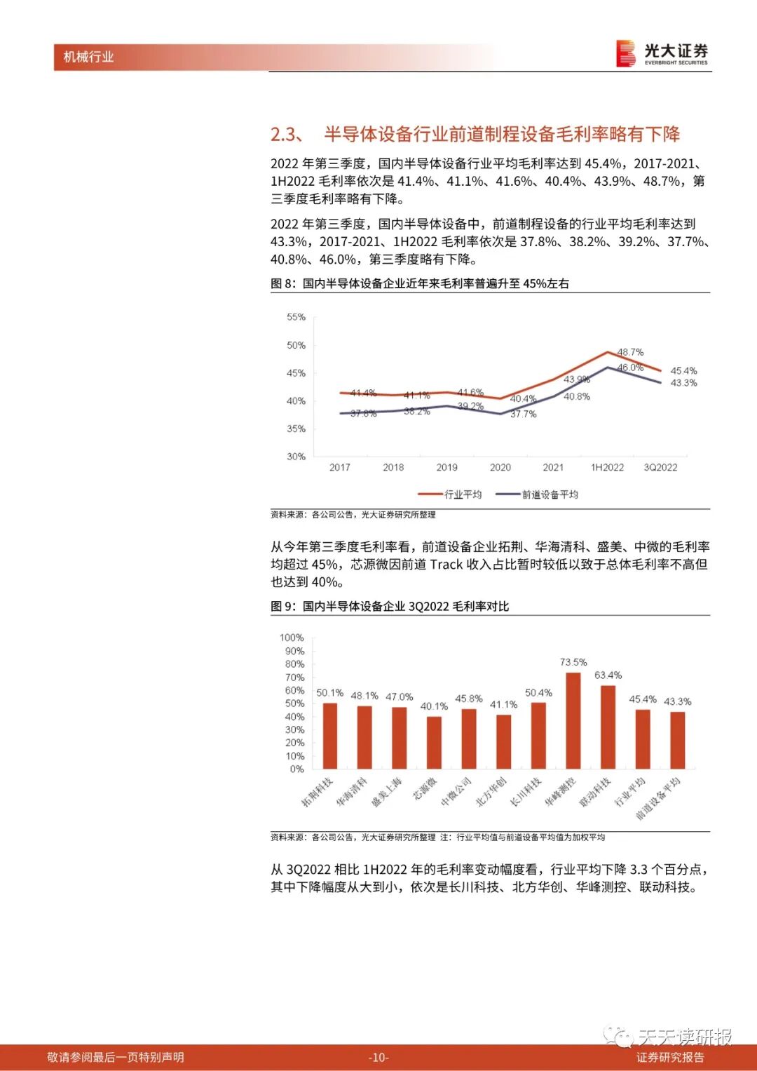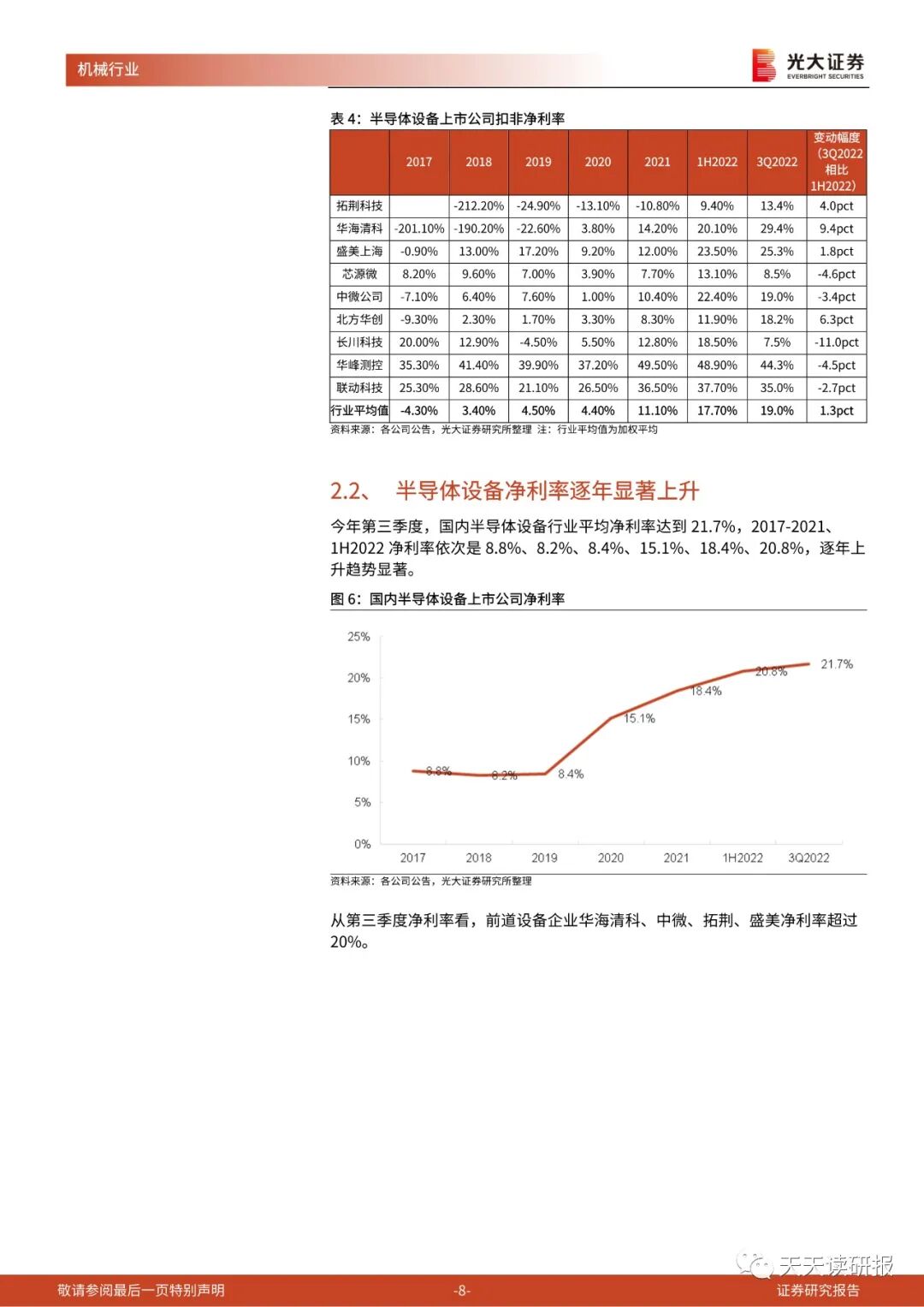 国内半导体设备上市公司业绩加速增长。3Q22 半导体设备行业总收入同比增长65%,其中芯源微单季度收入增速最快,达到 100%,盛美上海单季度收入同比增长 91%,拓荆科技单季度收入同比增长 79%,北方华创单季度收入 45.68亿元,同比增长 78%。