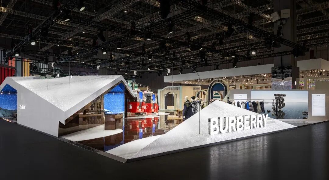 专为本次进博会精心设计和打造的博柏利展台别具一格,让人联想到绵延山脉中舒适的山巅雪屋。在高山雪地为主题的冰雪世界中,观众可以身临其境,开启户外探险之旅。展台外立面仿佛覆盖着积雪,其柔和的线条映照着博柏利全新外套系列的绗缝轮廓,并点缀有标志性 TB 印花,致敬品牌创始人的开拓精神。展台内布置有雪山缆车,缆线伸向未知的远方,礼赞无畏探索中的机遇和喜悦。