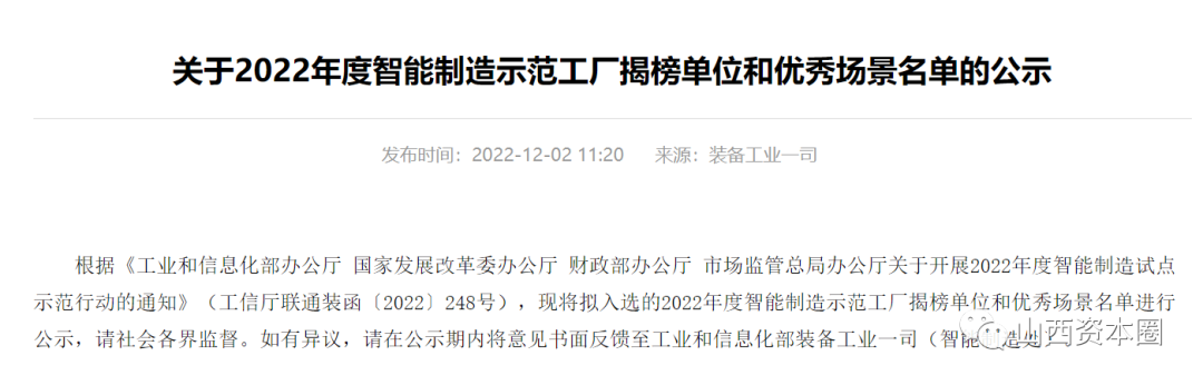2022年度智能制造示范工厂揭榜晋企名单