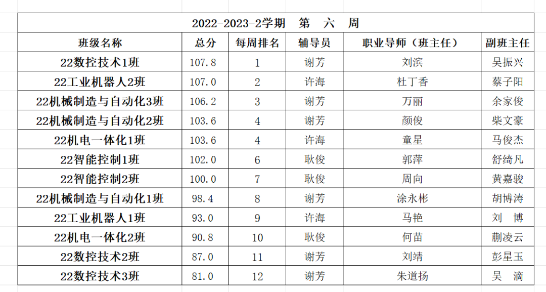 【智能制造学院2022-2023-2学期第六周班级量化考核】